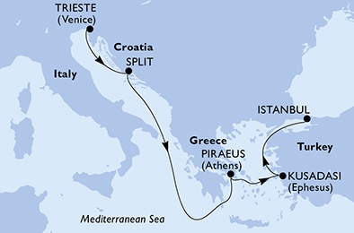 W odwiedzanych portach czas wolny na zwiedzanie i wypoczynek. Podróżni mogą również skorzystać z bogatej oferty wycieczek fakultatywnych (rezerwacja i zakup na statku). Istnieje możliwość zarezerwowania za pośrednictwem naszego biura transferów na statek oraz parkingu dla samochodu.